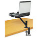 Prevent neck strain by elevating your laptop to optimal viewing height with this arm. Move up or down to three positions to achieve the height you want. Tilts up or down 45, pivots 180 right to left and rotates 360. Easily clamps to surfaces up to 2 1/2" thick (2" desk overhang required) or mounts in grommet hole. Includes cord management system.