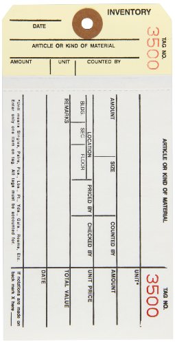 Original price $45.00 - Original price $45.00Original price$45.00$45.00 - $45.00Current price $45.00| /Aviditi Inventory Tags with Printed Carbonless Top Sheet and Stub, 8 6 1/4" x 3 1/8", Consecutively Numbered Series (3500-3999), White/Manila, for Inventory Management, Case of 500