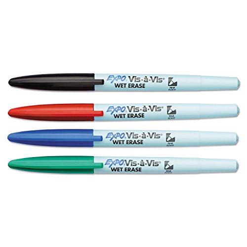 Original price $10.00 - Original price $10.00Original price$10.00$10.00 - $10.00Current price $10.00| /EXPO 16074 Vis-a-Vis Wet-Erase Marker Fine Point Asstd. 4/Set